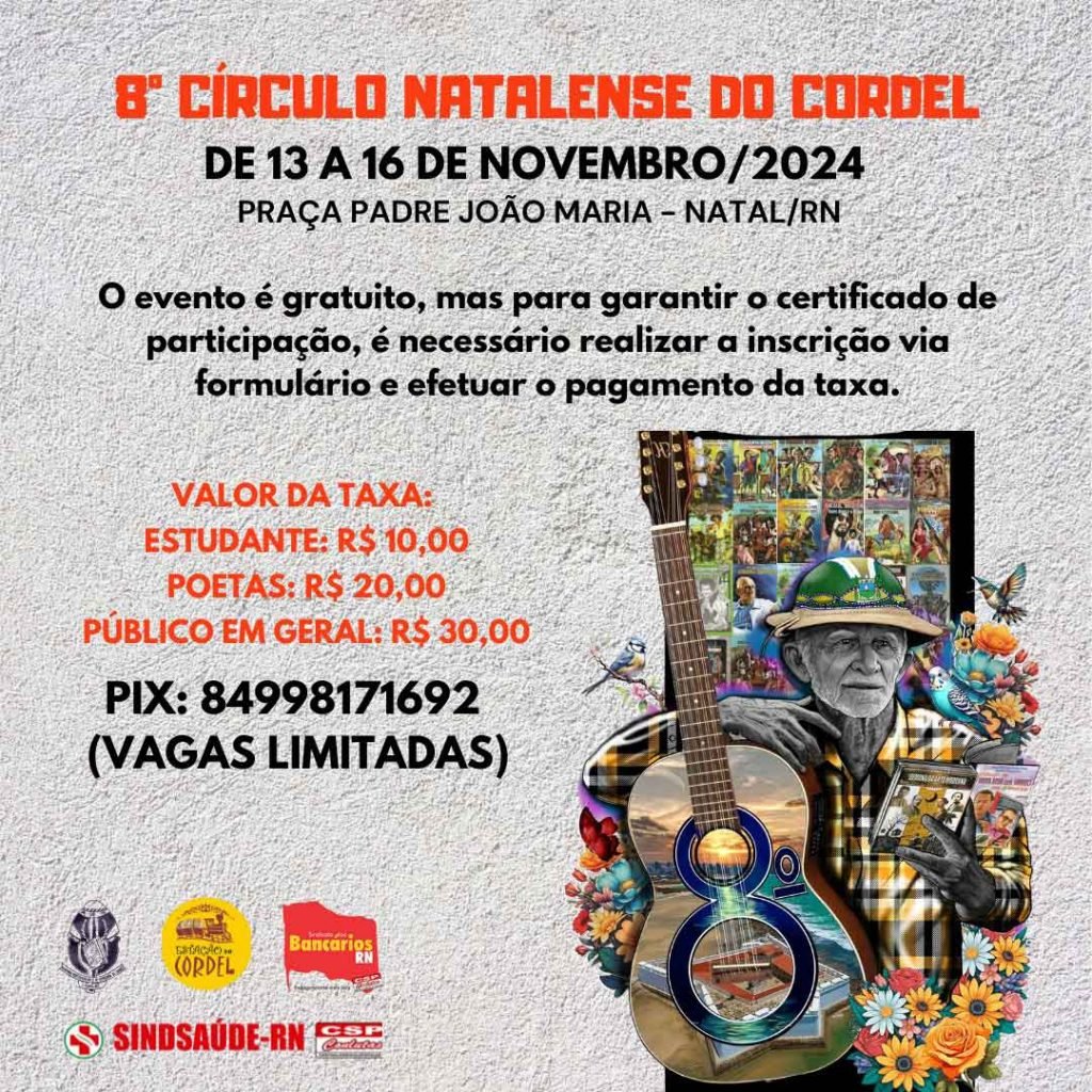 Paralelamente, o 8º Círculo Natalense do Cordel convida todos os apaixonados pela arte do verso rimado e da poesia em geral para celebrar a liberdade de expressão e a resistência cultural, com o lema “Cordel, Repente e Liberdade”. Este encontro, que já se consolidou no calendário cultural de Natal-RN, terá exposições, debates temáticos, lançamentos literários e atividades pedagógicas, fortalecendo o vínculo entre o cordel e o cenário educacional.