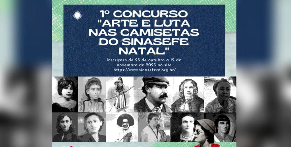 O Sinasefe Seção Natal, em parceria com o Núcleo de Artes do IFRN Campus Natal Zona Leste, lançou o 1º Concurso “Arte e Luta nas Camisetas do Sinasefe Natal”. Voltado para estudantes do Instituto Federal, a iniciativa pretende estimular a criatividade e popularizar personagens importantes da história potiguar. Larger Image A ideia é que os/as […]