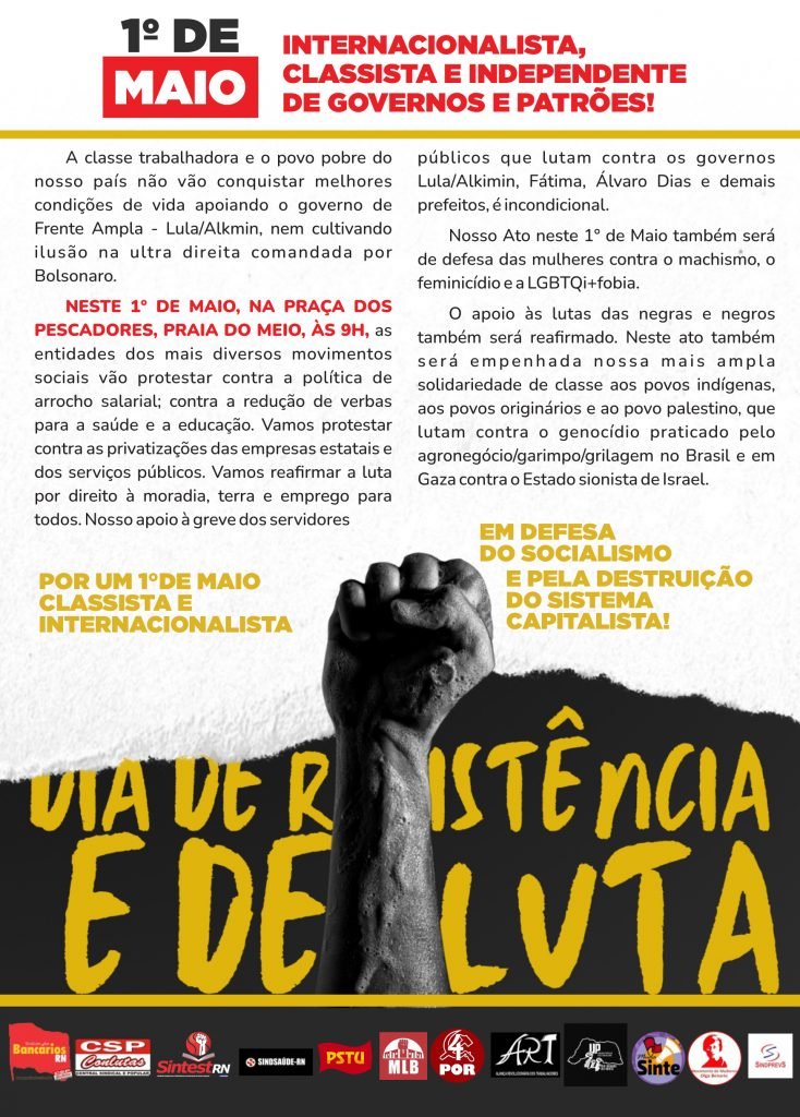 1º de Maio: Internacionalista, Classista e independente de governos e patrões! A classe trabalhadora e o povo pobre do nosso país não vão conquistar melhores condições de vida apoiando o governo de Frente Ampla – Lula/Alkmin, nem cultivando ilusão na ultra direita comandada por Bolsonaro. NESTE 1° DE MAIO, NA PRAÇA DOS PESCADORES, PRAIA DO […]