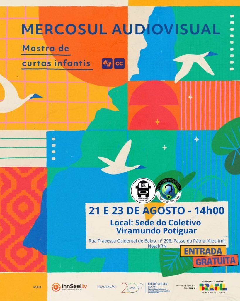 Nesta quarta e sexta-feira, dias 21 e 23 de agosto, a Mostra Mercosul Audiovisual – Ciclo de Curtas Infantis, tem sessões com exibição pelo Coletivo Kurta na Kombi em parceria com o Coletivo Viramundo Potiguar As sessões acontecerão na sede do Viramundo, na comunidade do Passo da Pátria, a partir das 14h. A entrada é gratuita […]