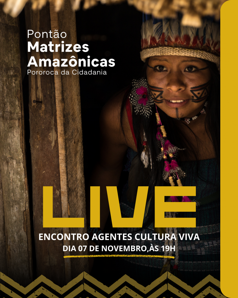 No próximo dia 7 de novembro, o Pontão Matrizes Amazônicas – Pororoca da Cidadania promove o Encontro Formativo Virtual dos Agentes Cultura Viva , uma live que reunirá jovens agentes culturais de várias regiões do Brasil para um momento de formação e fortalecimento de redes de atuação. O evento, que acontecerá de forma online […]