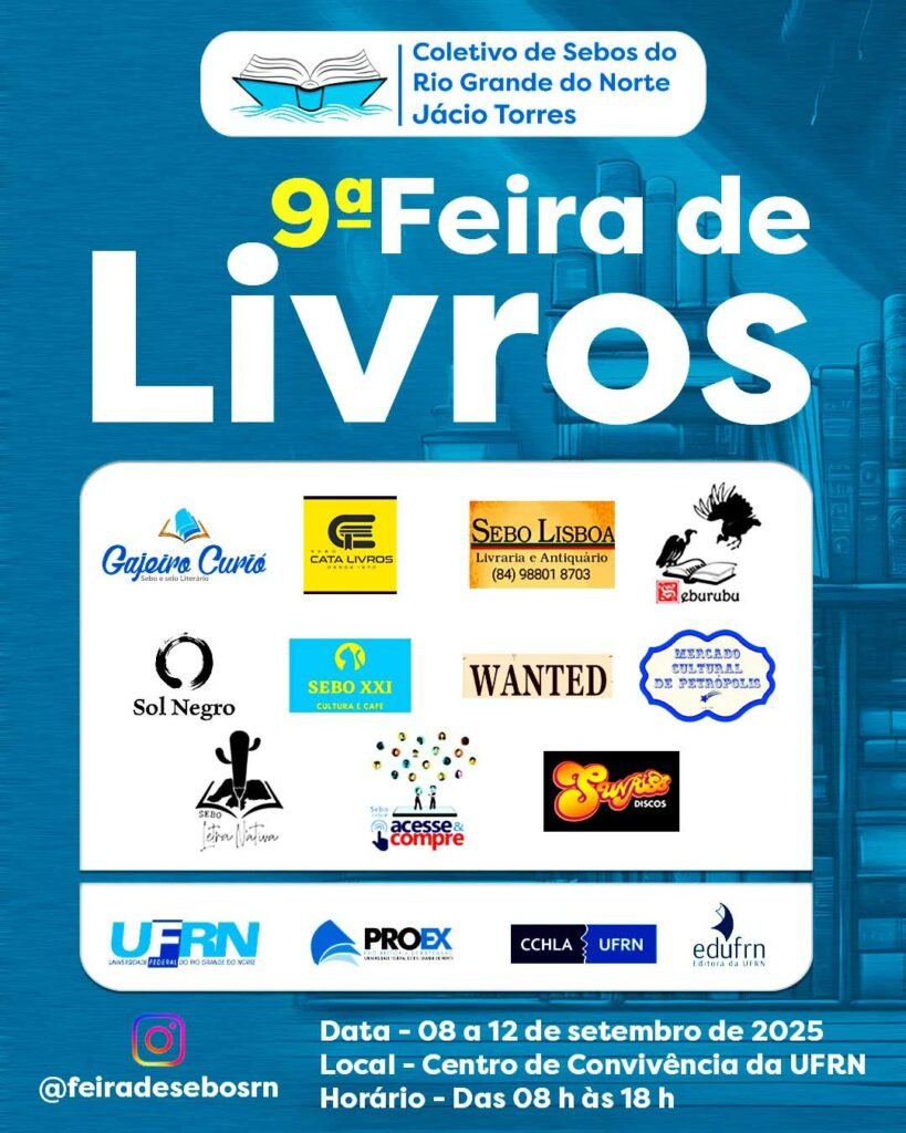 Após movimentar o Centro de Convivência da UFRN em junho, a Feira de Livros do Coletivo de Sebos do Rio Grande do Norte – Jácio Torres já tem data para voltar: de 08 a 12 de setembro de 2025, das 8h às 18h. O evento, que já integra a programação cultural da cidade, promete mais […]