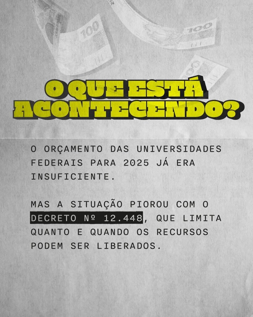 De acordo com o Andes, tal decreto escancara toda a malvadeza do Arcabouço Fiscal. Daí, a importância de fortalecer a mobilização nacional pelo fim desse tal Arcabouço, pela recomposição do orçamento das instituições federais de ensino e pela revogação do Decreto 12.448/2025.