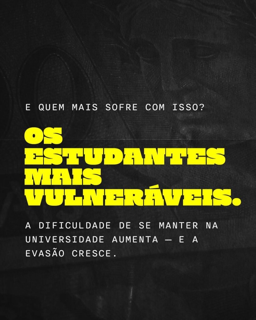 O Coletivo Rebeldia alerta para o crescimento da evasão estudantil e o sucateamento dos serviços que empurra cada vez mais as universidades para a dependência de emendas parlamentares e parcerias com o setor privado. Uma política neoliberal que fortalece o ensino superior privado, que já concentra cerca de 80% dos alunos matriculados no Brasil.