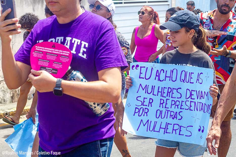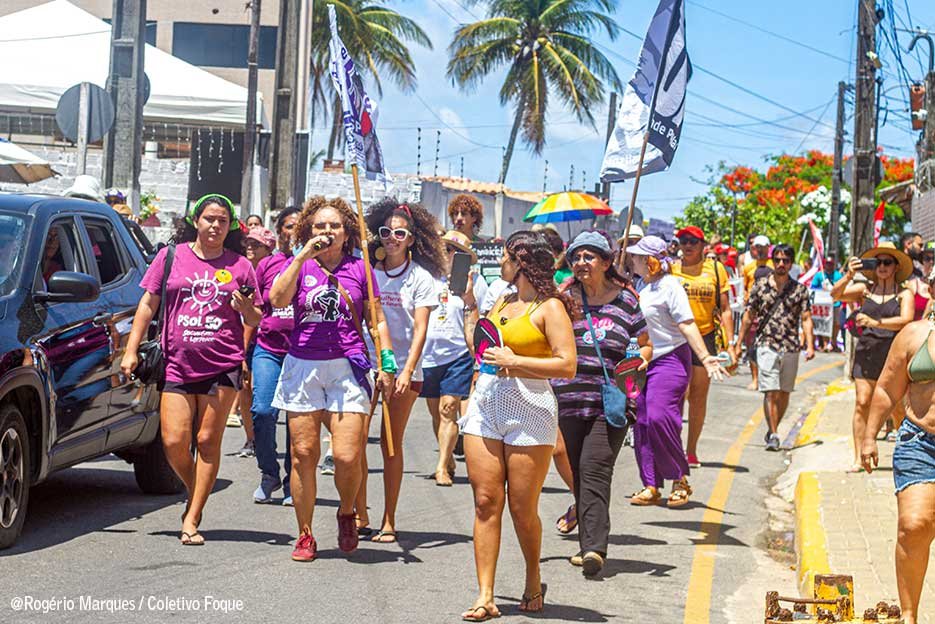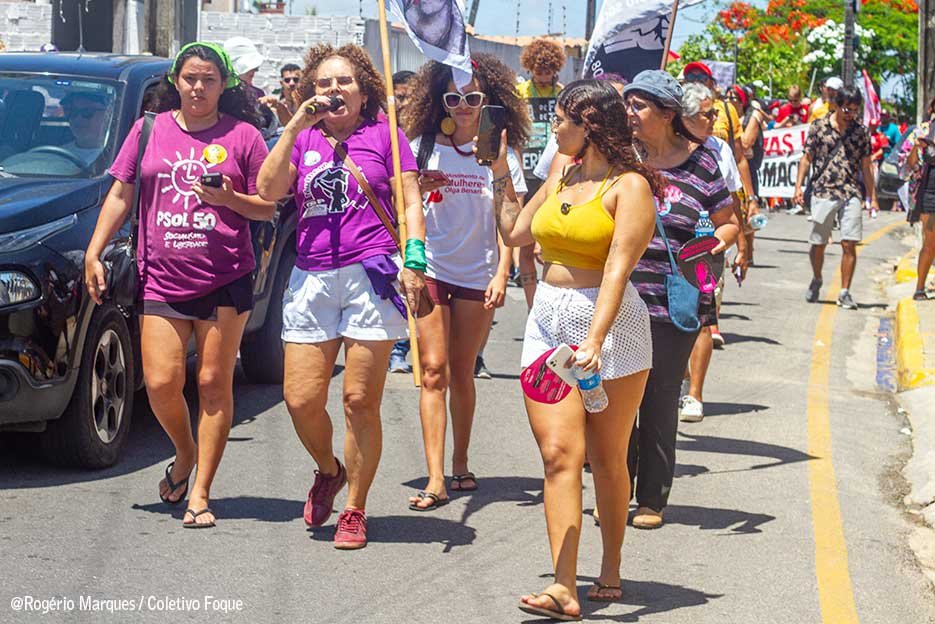 “Todos os dias o feminicídio só aumenta e nós não podemos aceitar essa violência que vem nos tirando nossas vidas, nos tirando o direito de viver. Então, nossa luta é todo dia porque mulher não é mercadoria”, alerta a professora Socorro Alves indignada com a sequência de horrores causadas pelo machismo. Durante as manifestações o Coletivo Foque registrou a força da luta gritada por meio de cartazes, faixas, palavras de ordem e pelo batuque de mulheres.