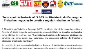 Todo apoio à Portaria nº 3.665 do Ministério do Emprego e Trabalho: negociação coletiva regula trabalho no feriado 23 de novembro de 2023 LEIA MAIS →