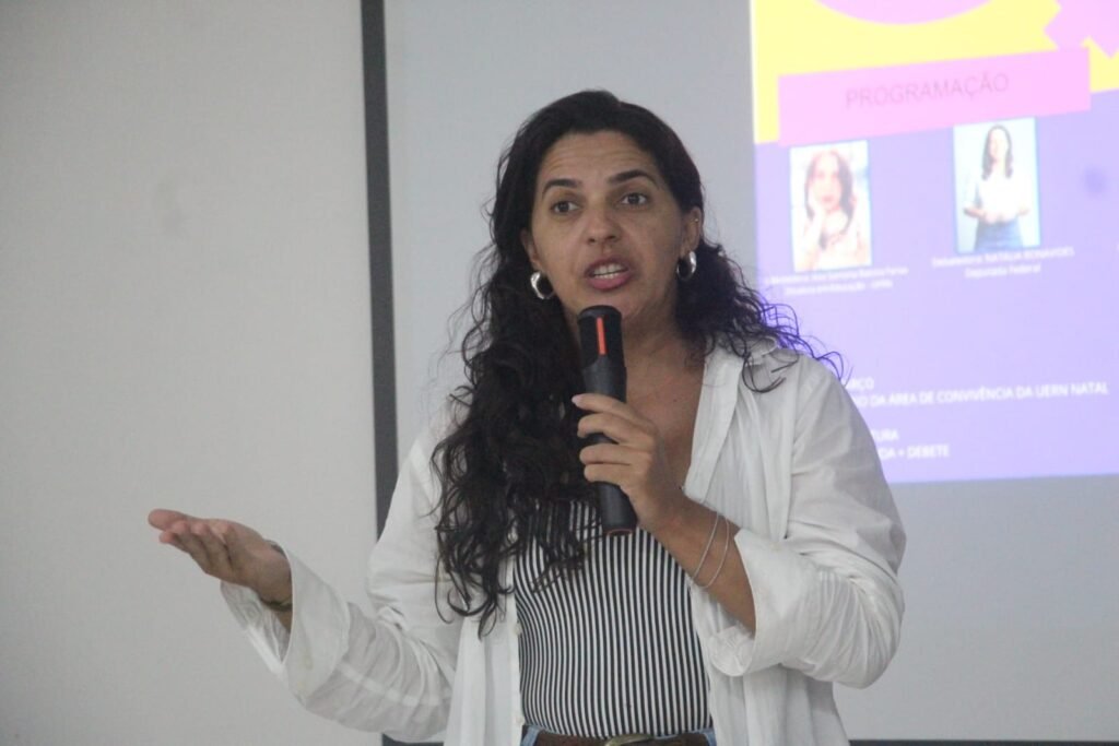 Questões como Direitos Humanos em tempos de ódio, Mulheres, Democracia e Mídias marcaram o segundo dia de debabtes na UERN. A doutora em educação Ana Santana apresentou um panorama mundial dos movimentos antidemocráticos e o cenário da desinformação e polarização política com elementos do totalitarismo, mesmo depois da chegada da Democracia. Uma conversa pra lá de necessária com o tema “Vozes da Resistência: as mulheres na história dos direitos humanos [de Nísia Floresta a Eunice Paiva]. Em seguida, rolou o papo da deputada federal Natália Bonavides sobre “Mulheres, democracia e mídia”, que teve mediação da professora Maria José Vidal (Departamento de Ciências da Religião da UERN Natal), que coordena o projeto Cinema e Feminismos.
