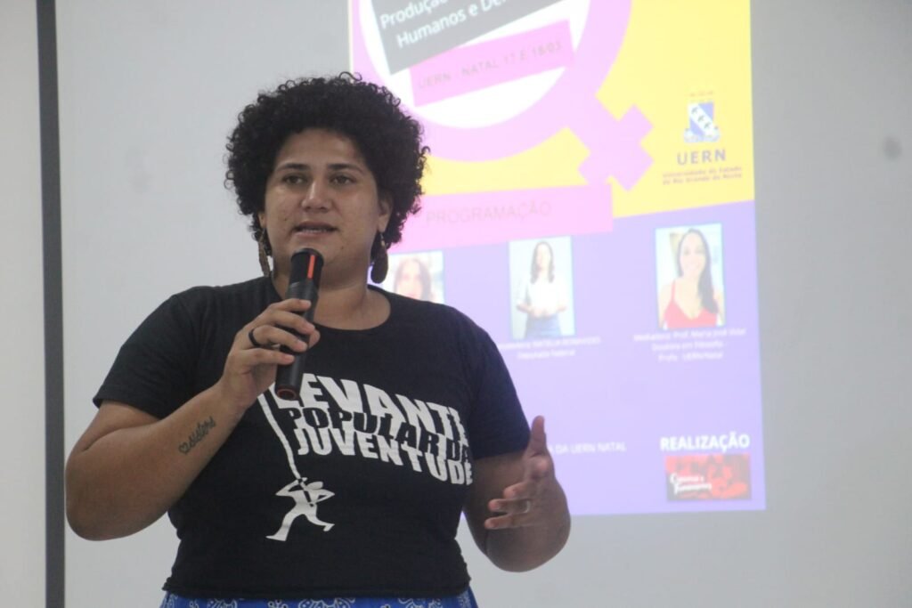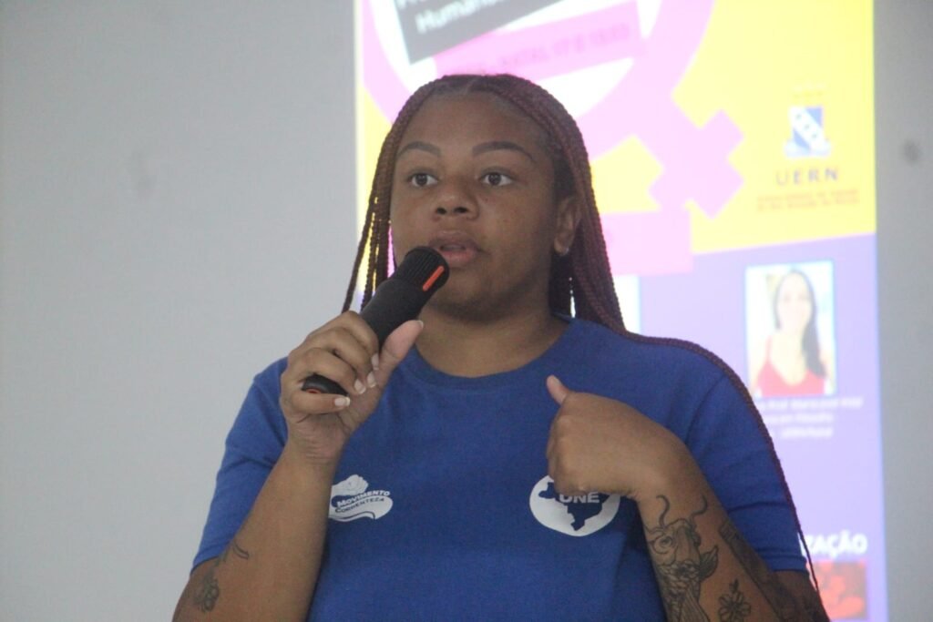 No primeiro dia, a exibição do filme “Doméstica” antecedeu o debate com Jonhkat Leite (doutoranda em Filosofia – UFRN) com mediação de Kelly Cristina Camelo (Ouvidora da UERN Natal).