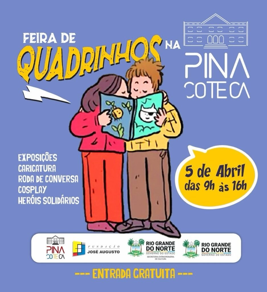 A programação acontece no Salão Nobre de Exposições da Pinacoteca Potiguar, neste sábado dia 5 de abril, das 9h às 16h, e contará com lançamentos de HQs, exposições, venda de produtos e bate-papos com autores locais.