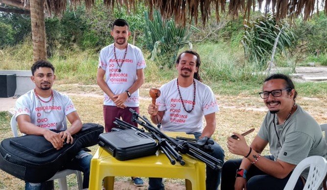 O primeiro dia do festival foi encerrado com apresentação do grupo musical Itamaraká — que na língua tupi significa “instrumento de pedra”, segundo Akanguaçu Diego. Uma combinação sonora de violões e maracás que evoca tanto a ancestralidade quanto a criação contemporânea dos Potiguara.