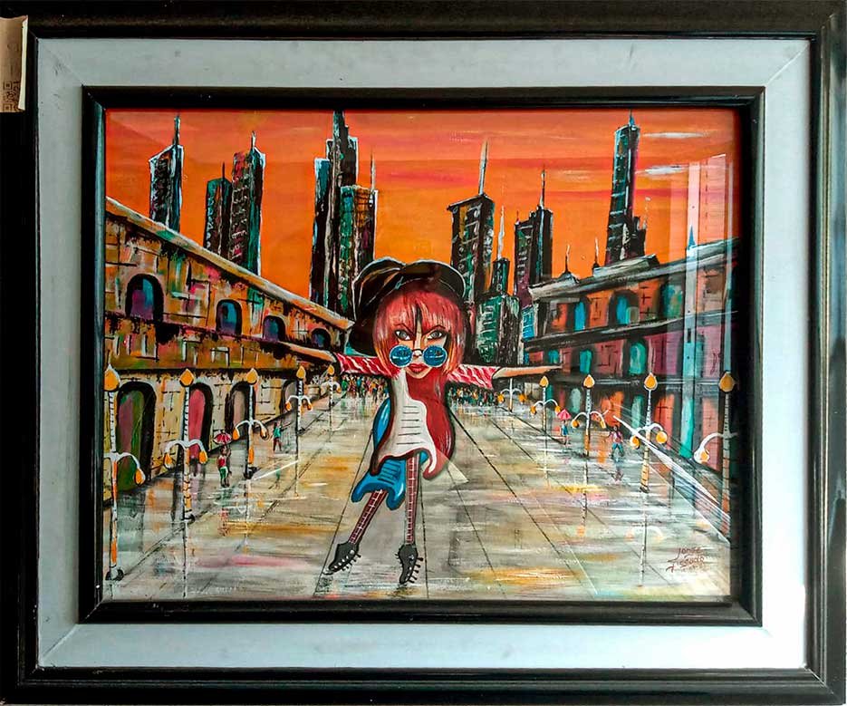 Pintura acrílica sobre papel canson, moldura e vidro, tamanho 80×90