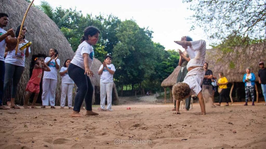 E quando o sol começa a baixar, entram em cena o ritmo e a tradição da roda de capoeira com o grupo Capoeira Raça, além do coco de zambê do Pau-furado Zabelê batendo forte como coração de tambor. Por fim, o Toré unindo toda a comunidade presente.