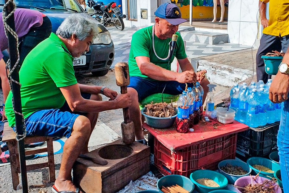 Existem raizeiros que só vendem, repassam suas mercadorias e outros que vão às matas e negociam suas cascas e plantas medicinais colhidas. Agora, me lembrei de minha longa conversa com o rezador e doutor raizeiro da Cidade de Major Sales, Tadeu Santana (2005), que me deu uma preciosa aula: Doutô, a gente tem hora para ir cortá pau na mata. Tem que ir bem cedinho e sozinho, sem rebuliço. Rezar antes de sair de casa, viu, e na entrada da mata. Dizendo no caminho que não vai cortar ou derrubar nada. A mata tem dono e ela não gosta de machado e foice. E tem que chegar com a casca certa sem o sol esquentar. Tem dia bom e abençoado para ir. Da segunda à quinta-feira. Se reza pra São Bento e vai com fé. Chega em casa, vai preparando a garrafada. E a garrafada ou lambedô só serve se colocado em garrafa de cor escura. Se toma bem cedo e um banho frio depois. Durante o tratamento não se toma cachaça e nem cachete (comprimido) de médico. Também não se deita com mulher. Se toma sete dias e com muita fé na cura. O senhô use o limão todo dia, pingando na sua água de beber. E qualquê probrema com a garganta, use a rumã. A rumã é tão forte que não se toma mais do que três dias… Casca de cajueiro azedo; Casca de Ipê roxo; Casca de Quixabeira; Casca de Cumaru e Casca de Jatobá – cura tudo de inframação…