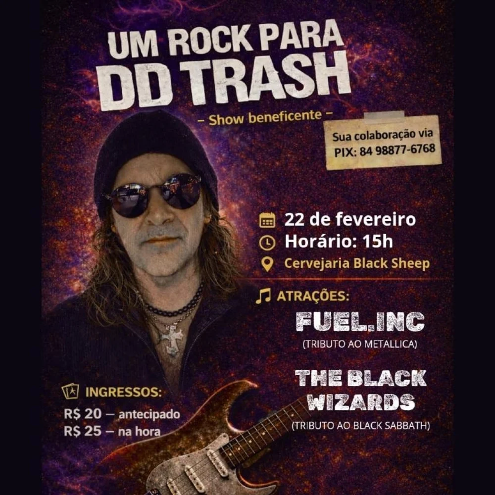 Recentemente, o músico foi diagnosticado com descolamento de retina, uma emergência oftalmológica que exige intervenção cirúrgica imediata. Sem os recursos necessários para o procedimento na rede particular e diante da longa fila de espera no sistema público, DD Trash corre o risco real de perda total e irreversível da visão no olho afetado. A campanha solidária busca arrecadar R$ 20 mil para cobrir os custos da cirurgia, exames e pós-operatório.
